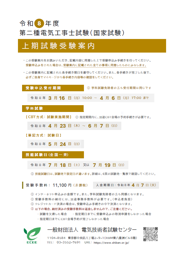 令和8年度第二種電気工事士上期試験受験案内
