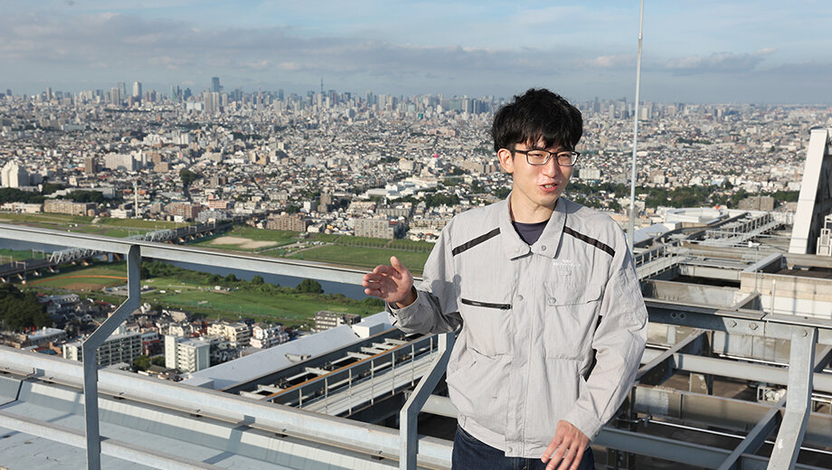 研究開発部門や関係会社など多くの従業員が働くNEC玉川事業場で、電気設備の更新計画策定や設備投資、事業場のエネルギー管理などを主な業務としています。その他にも電気設備の点検記録の確認や工事仕様の決定、工事の進捗管理なども行っています。またNECグループ社員向けに電気の取り扱いなどに関する研修の講師も担当しています。